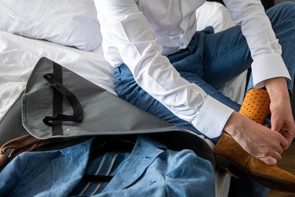 Ik had al enig idee welke kant ik uit wilde qua stijl en Tristan wist dit fantastisch te realiseren. Hij heeft naast het pak ook de schoenen, overhemd en sokken uitgezocht tezamen werd het een geheel. Met de das en sokken heeft hij mij echt verrast en dit maakte het helemaal af.